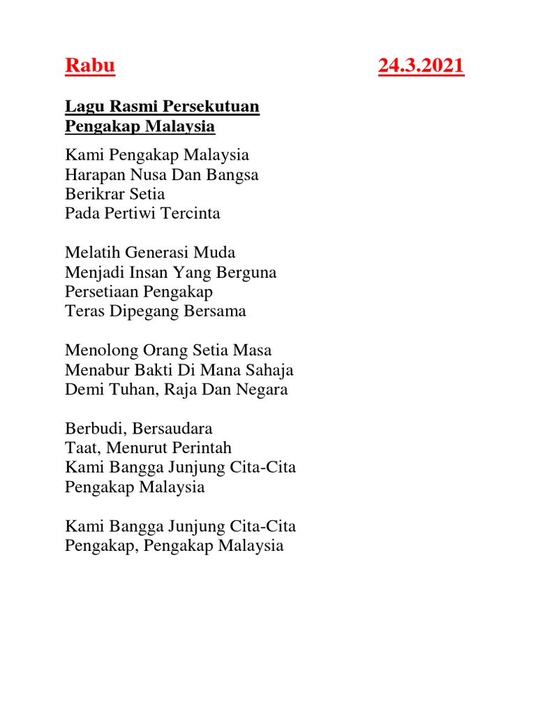 Lirik Lagu Pengakap Malaysia. Badan Unit Beruniform ada pelbagai jenis di Sekolah RendahContohnya- 1Persatuan Bulan Sabit Merah PBSM 2Tunas Puteri 3Puteri Islam 4Tunas Kadet Remaja. A short summary of this paper.